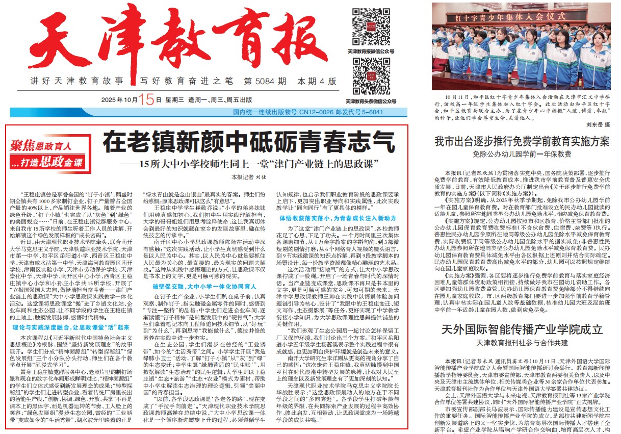 ——15所大中小学校师生同上一堂“津门产业链上的思政课”本报记者刘佳“王稳庄…