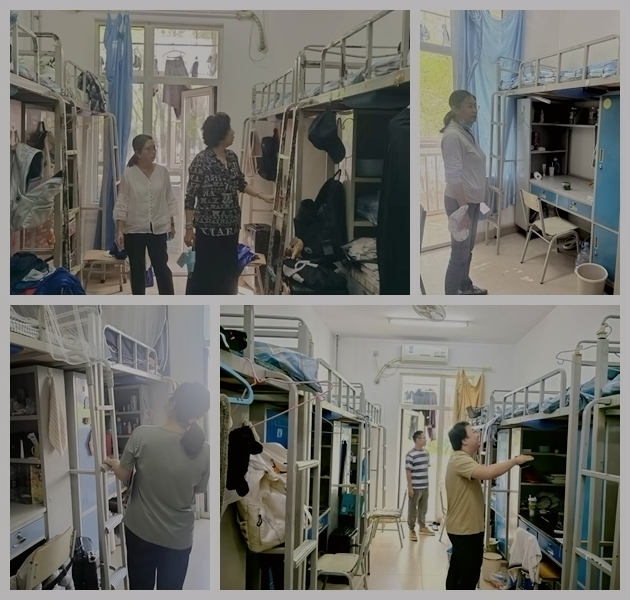 9月29日,学院党总支书记王玲带领辅导员和班主任深入学生宿舍,开展“逐间过、全覆盖”的宿舍安全排查,检查重点覆盖违规电器使用、私拉电线等情况,对发现的问题建立台账并限期整改,确保隐患动态清零。检查过程中,老师们还与同学们亲切交流,了解思想动态,叮嘱留校学生遵守住宿规定,注意财物安全,离校前做好宿舍断电和门窗检查。