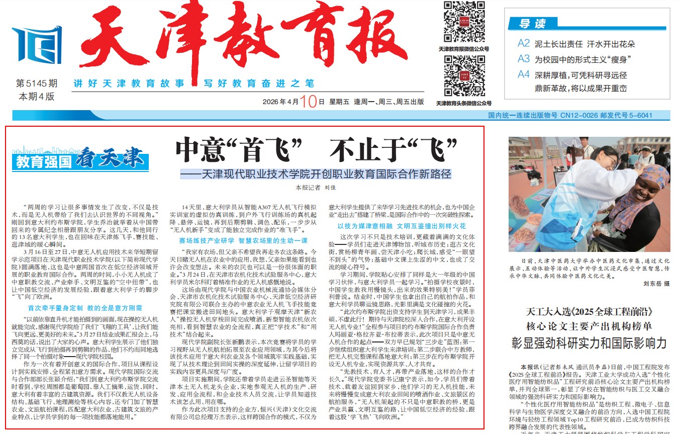 ——天津现代职业技术学院开创职业教育国际合作新路径本报记者刘佳“两周的学习…