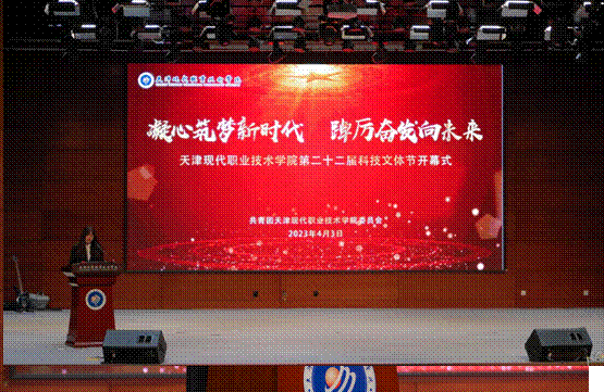 为全面学习贯彻党的二十大精神和习近平总书记关于青年工作的重要论述,贯彻落实立德树人根本任务,加强校园文化建设,活跃校园文化氛围,4月3日下午,天津现代职业技术学院“凝心筑梦新时代 踔厉奋发向未来”第二十二届科技文体节开幕式在学院报告厅隆重举行。学院纪委书记、工会主席韩淑君,管理工程学院党总支书记赵红艳,生物工程学院党总支书记王玲,公寓管理中心主任杨莉,机电工程学院党支部副书记杨兰福,智能工程学院党支部副书记陈慧,信息工程学院党支部副书记冯泽,学生处副处长左宏伟出席开幕式。学院团委、学生处和二级学院团总支书记以及来自全校480余名学生代表参加活动。