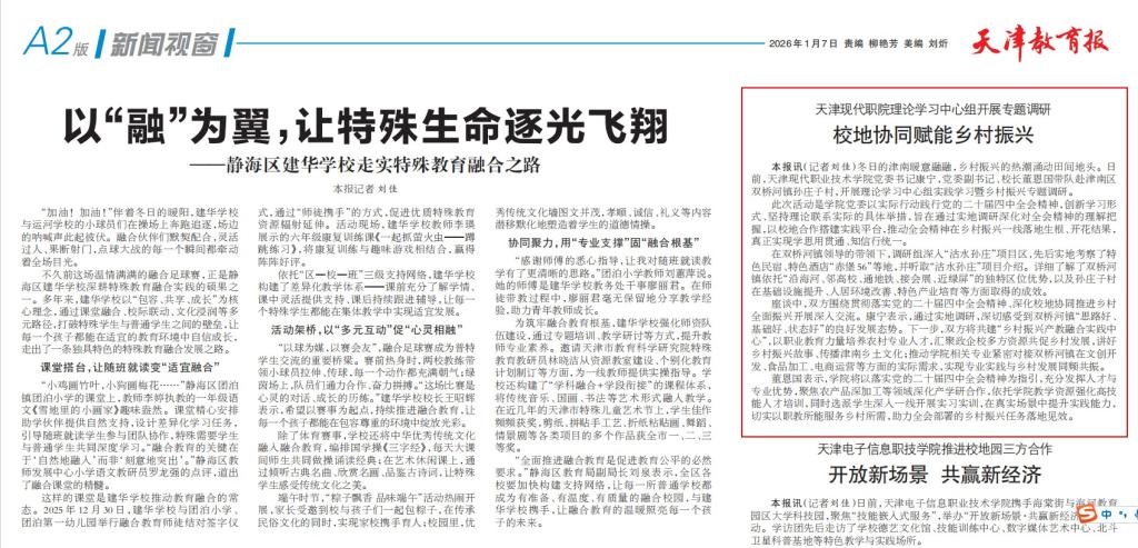 座谈中,双方围绕贯彻落实党的二十届四中全会精神、深化校地协同推进乡村全面振兴开展深入交流。康宁表示,通过实地调研,深切感受到双桥河镇“思路好、基础好、状态好”的良好发展态势。下一步,双方将共建“乡村振兴产教融合实践中心”,以职业教育力量培养农村专业人才,汇聚政企校多方资源共促乡村发展,讲好乡村振兴故事、传播津南乡土文化;推动学院相关专业紧密对接双桥河镇在文创开发、食品加工、电商运营等方面的实际需求,实现专业实践与乡村发展同频共振。